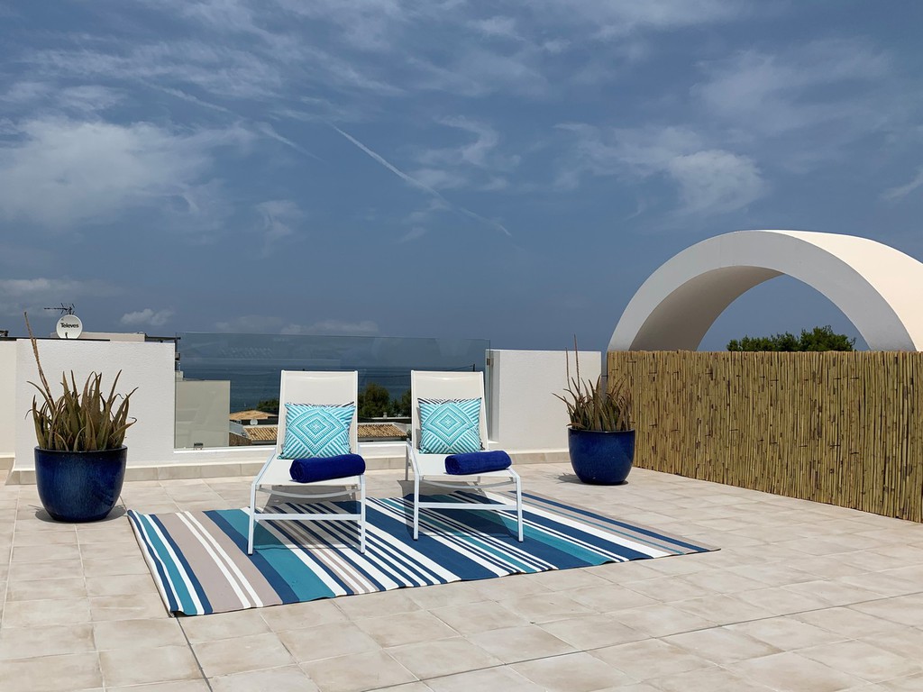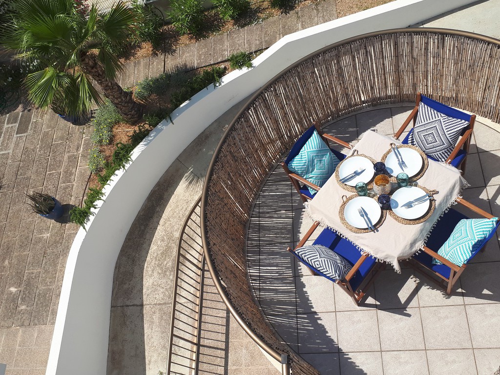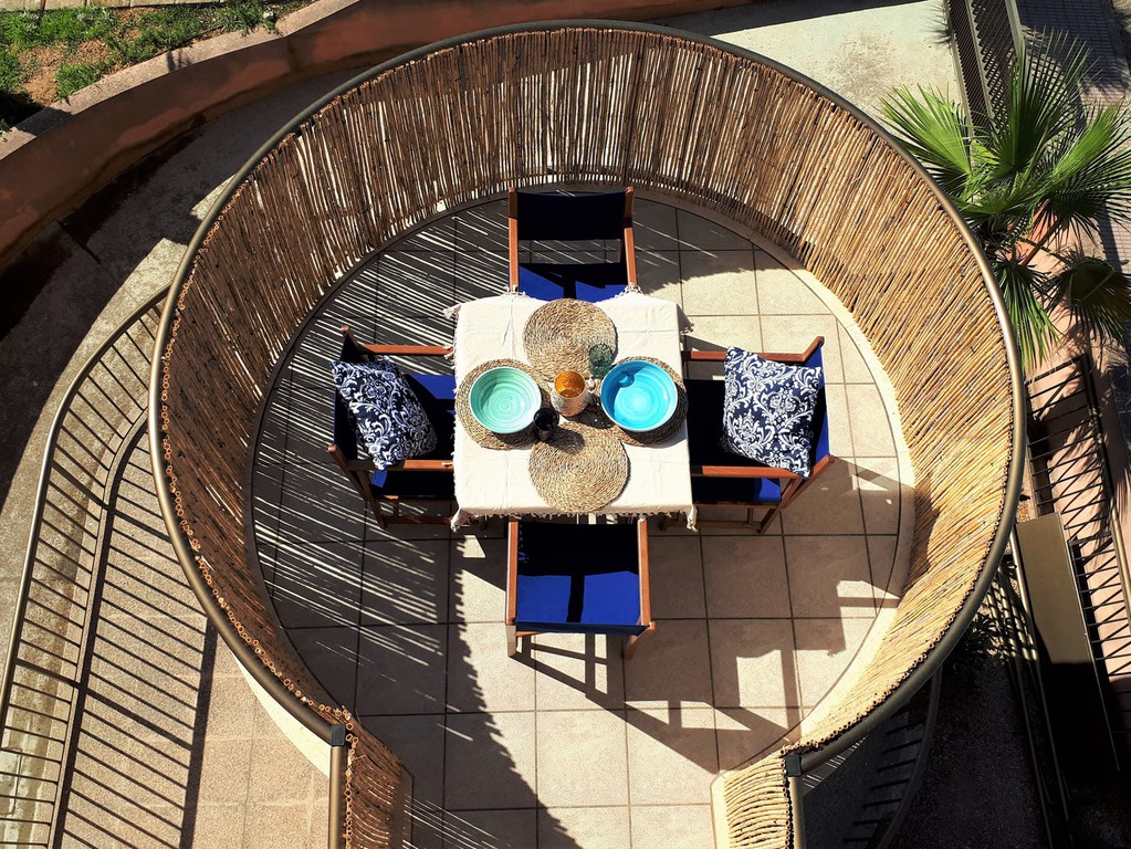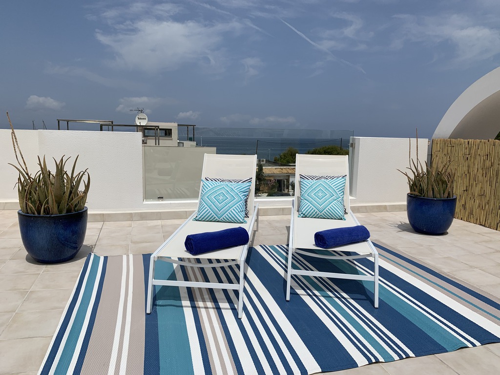 GREAT PRIVATE TERRACE WITH SUN ALL DAY, SUNBEDS, AND OUTDOOR TABLE.