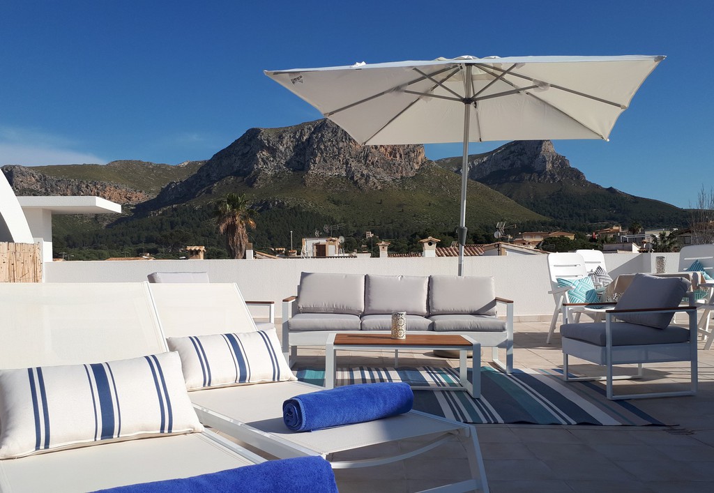 THE TERRACE OVERLOOKS ALL THE VILLAGE, SEA, AND MOUNTAINS OF THE NATURAL PARK OF LLEVANT.